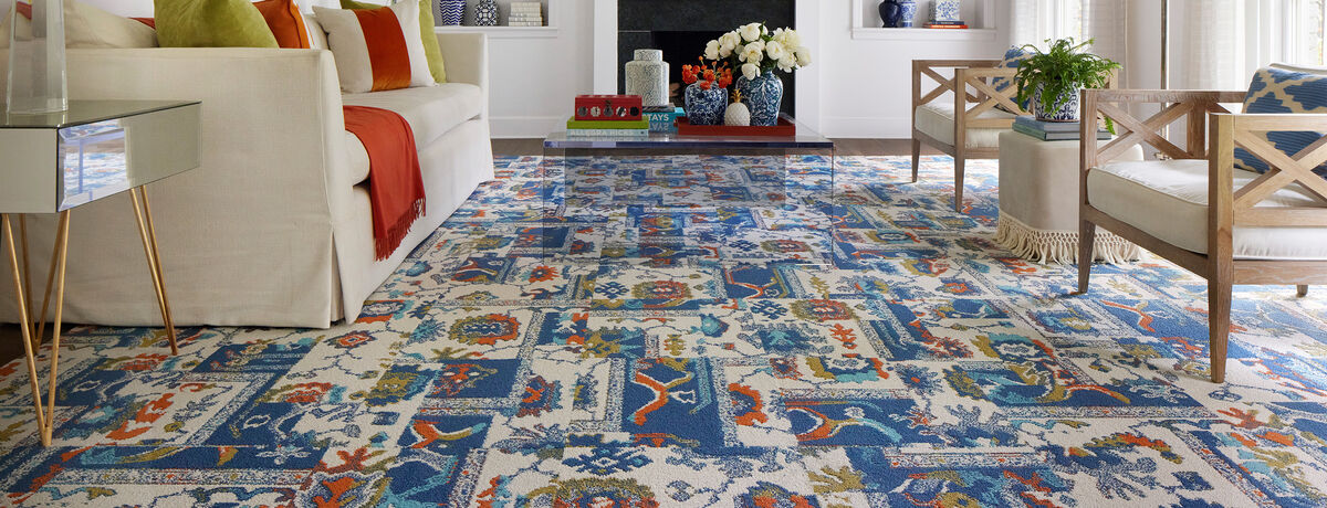 This timeless patchwork pattern is an ode to tradition, telling the tale of vintage styles with its own modern twist. This is a random pattern and no two carpet tiles are alike. The pattern will not align.